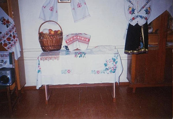 4 дівчина. Гарно оздобленим рушником накривають кошики з паскою чи яблуками , коли несуть святити в церкву. Витканий рушник висів на видному місці і призначався дорогим гостям для вмивання.